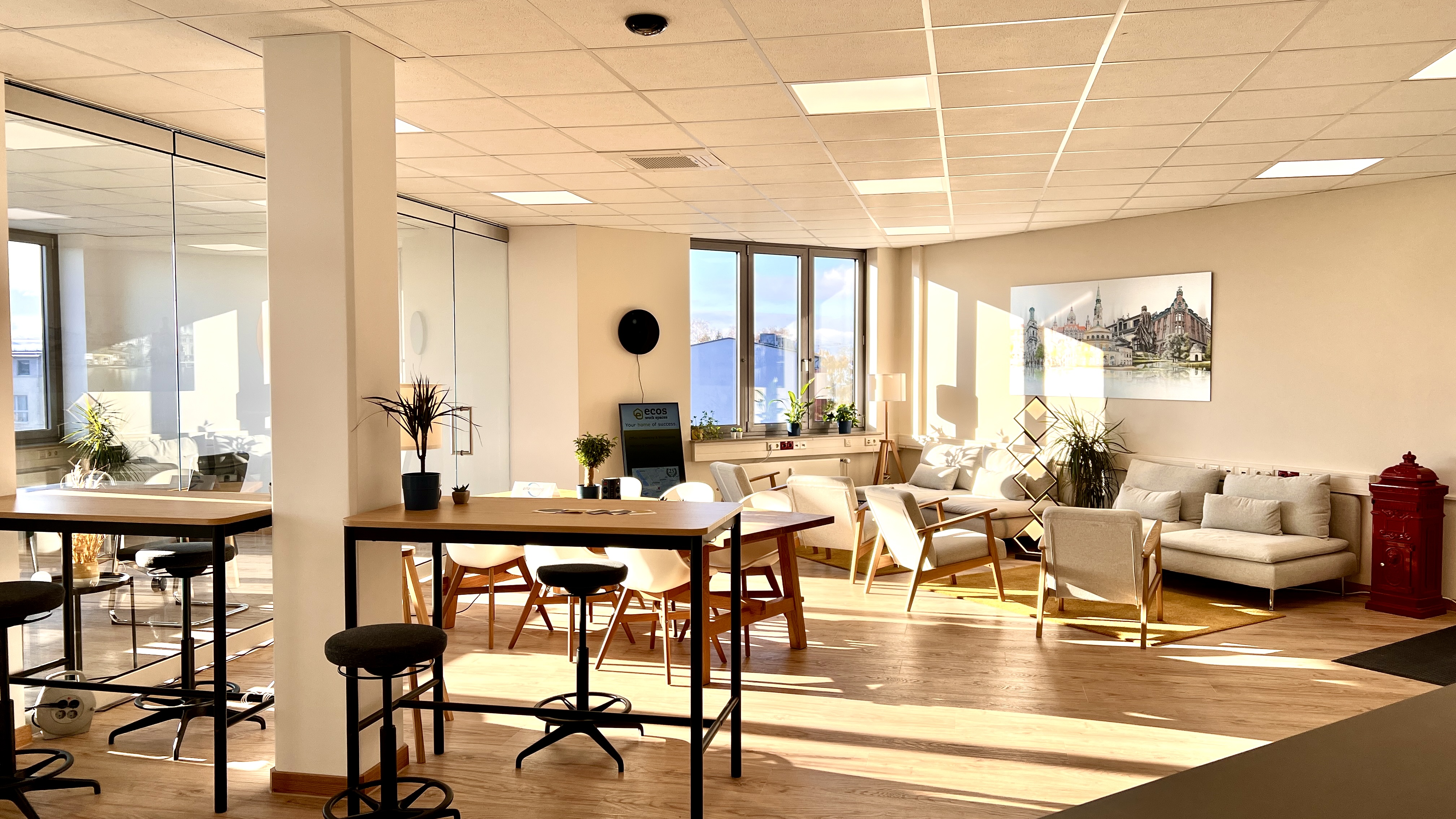 Das ecos work spaces bietet seinen zahlreichen, nationalen und internationalen Kunden seit über 25 Jahren höchst repräsentative und funktional ausgestattete Konferenz- und Büroräume in bester Lage. Wir stehen Ihnen auf ca. 1.200 qm mit großem persönlichen Engagement zur Verfügung – mit über 40 Büros zwischen 15-30 qm sowie flexiblen Tagungs- und Seminarräumen mit bis zu 100 qm. Alle Konferenzräume verfügen über eine hochwertige und professionelle Ausstattung sowie Büro- oder Tagungstechnik. Am exzellenten Standort Hannover-Süd haben Sie eine sehr gute Verkehrsanbindung zu allen Verkehrsmitteln. Ein hauseigenes Parkhaus ist selbstverständlich.