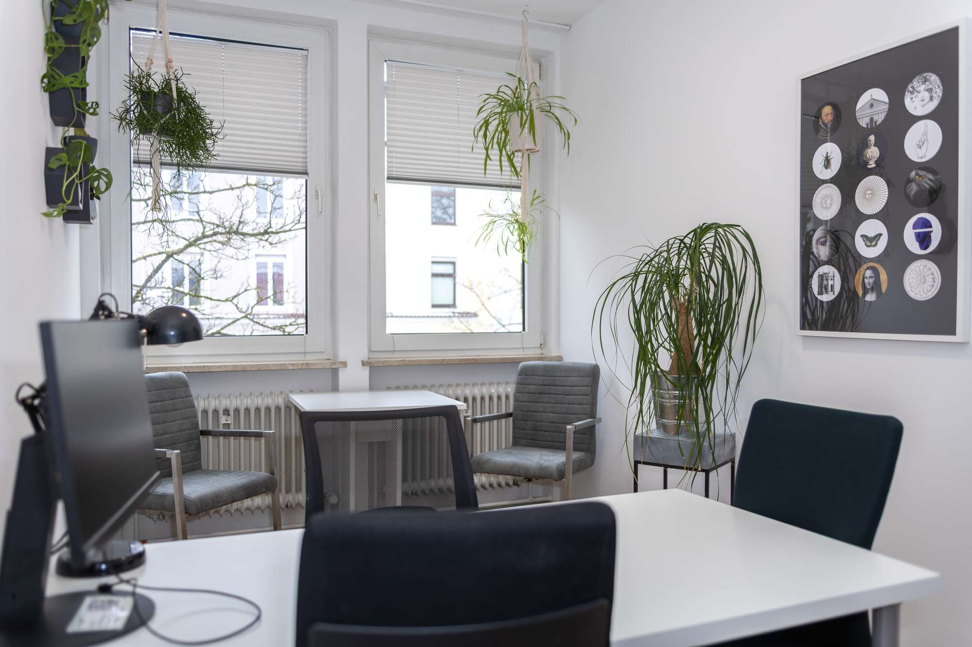 Wir bieten Euch ein absperrbares Einzelbüro ausgestattet mit Schreibtisch, Stuhl, Regal und kleinem Besprechungstisch an. ↵Schnelles WLAN und Kaffee in unserer großen Küche ist natürlich im Angebot erhalten.↵↵Wir freuen uns auf Dich!↵Dein Rent-A-Room-Munich Team