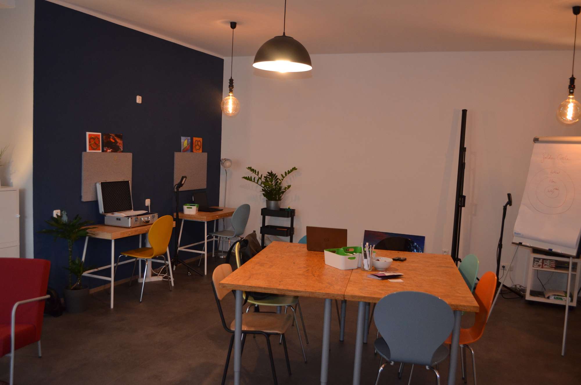 Ruhiger, cooler Raum für Workshops in entspannter Atmosphäre, Nähe Olympiapark↵↵Das Arbeitszimmer bietet Raum für kreative Ideen und konzentriertes Arbeiten während Ihres Workshops oder Seminars. Der Raum bietet Platz für 8 Personen. ↵↵In der Teeküche stehen Kaffeemaschine, Wasserkocher, Milchaufschäumer, Kühlschrank, Spülmaschine und Geschirr frei zur Verfügung. ↵↵Die Raumfläche kann entsprechend nach Bedarf bestückt werden: vier flexible Workshop-Tische, 2 kleine Schreibtische, 1 Sitzecke mit Couch, Sesseln und Kaffeetisch. ↵↵Workshop-Ausrüstung: Beamer, Flipcharts, Moderationskoffer und WLAN zur Verfügung. ↵↵Das Arbeitszimmer liegt in der Nähe des Münchner Olympia-Parks und ist sowohl öffentlich als auch mit Pkw gut erreichbar. ↵↵In der Nachbarschaft befinden sich in Laufnähe einige Restaurants, Cafés, Supermarkt.