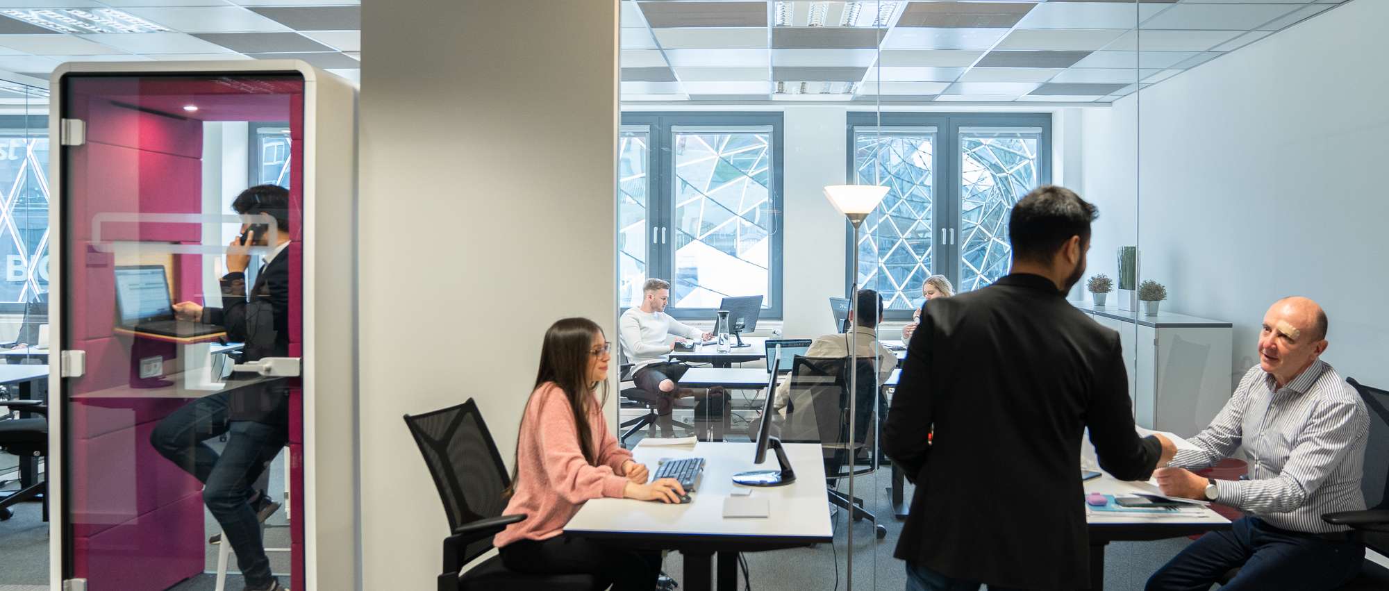 Weitere Inklusivleistungen: ↵1 Schreibtische höhenverstellbar, in Komfortgröße 140 x 70 cm ↵2⇥ergonomische Drehstühle ↵1⇥Sideboard(s) ↵+⇥High Speed Internet und Telefonanschluss mit Flatrate ↵+⇥Tee- & Kaffeespezialitäten ↵+⇥Nebenkosten wie Strom, Heizung, wöchentliche Grundreinigung ↵24/7 Zugang ↵als Geschäftsadresse zu registrieren