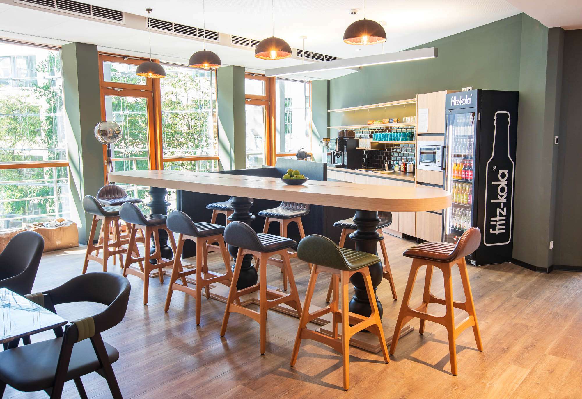 Unser Meetingraum bietet unter Corona-Abstandsregeln Platz für 10 Teilnehmer. Jeder Teilnehmer erhält einen eigenen desinfizierten Tisch, eigenen Flaschenöffner und eigenen Stift. ↵↵Der Raum ist ausgestattet mit einem Flatscreen TV und HDMI/USB Anschluss. Weitere Technik (Flipcharts, Moderationskoffer, etc.) kann dazu gebucht werden. ↵↵Wir empfehlen eine Getränkepauschale für 12,90 Euro pro Person.