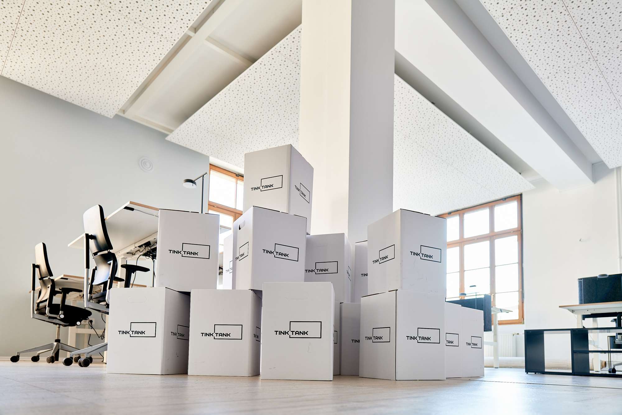 Nachbarn im GebäudeTink Tank is decorated in a Scandinavian style. The cool and muted color create an atmosphere where you can work without distractions. The rooms are wide and bright and leave room to dispense. In the relaxation room you can withdraw to relax and recharge your batteries.