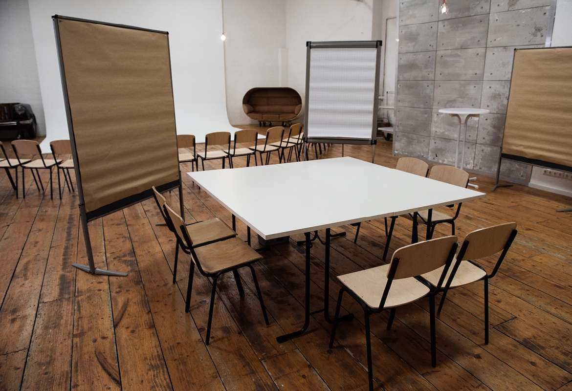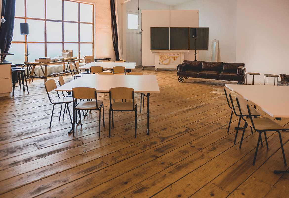 Zubuchbare Extra Über uns buchbar Über unsere »Preferred Partner« buchbar 2 Flatscreens (55 Zoll) 2 magnetische Whitebboards 1x 63A und 1x 32A Starkstrom Moderationskoffer Service-Personal Getränke (Bio-Schorlen, Wasser, Kaffee & Tee, Bio-Cola/-Mix) ab 14 €/Person Designer-Möbel-Paket: 2 Lounge-Stühle, Eye Ball Sessel, Biedermeier 2-Sitzer-Sofa, Barcelona 2-Sitzer-Sofa, Cube 3-Sitzer-Sofa, Holztisch und -bank, 3 Barhocker, 4 Beistelltische, 5 Stehtische (inkl. schwarz, weißen oder graue Hussen und Reinigung), 5 Tische 160×80 cm, 4 Retro-Lichter, Stehlampe, Retro-Ventilator Über uns buchbar Über unsere »Preferred Partner« buchbar Technik Catering, individuell auf Anfrage z.B. Frühstück ab 12 €/Person, Lunchpakete ab 15 €/Person oder Fingerfood ab 16 €/Person Florist, Pflanzen und Dekoration Ausstatter für weiter Möbel etc. Fotograf/Videograf