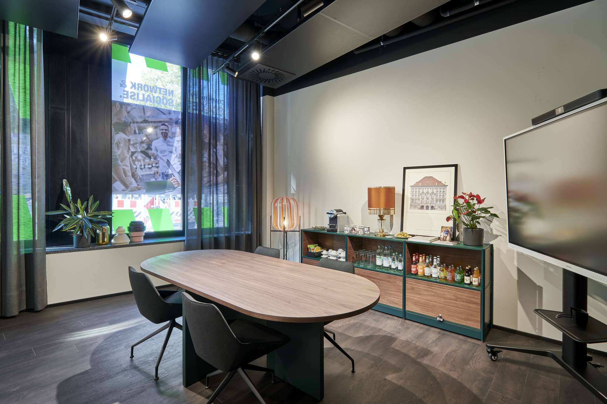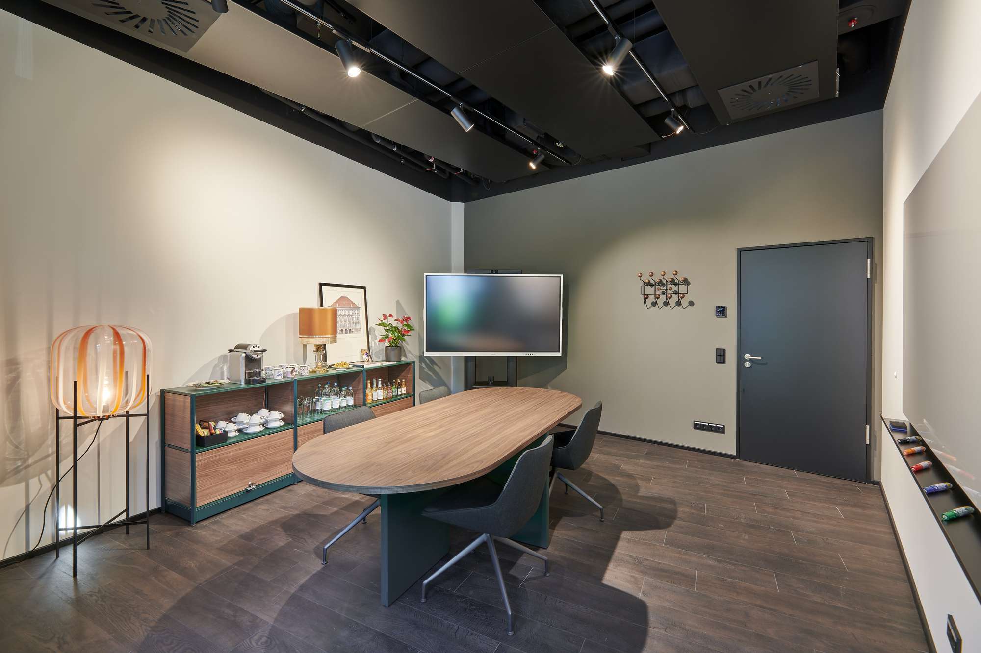 Unser Meetingraum ist perfekt für kleine Teams mit bis zu 6 Personen. Es bietet eine ruhige und professionelle Arbeitsumgebung, die durch moderne Möbel, Ausstattung und hochwertige Medientechnik ergänzt wird.
