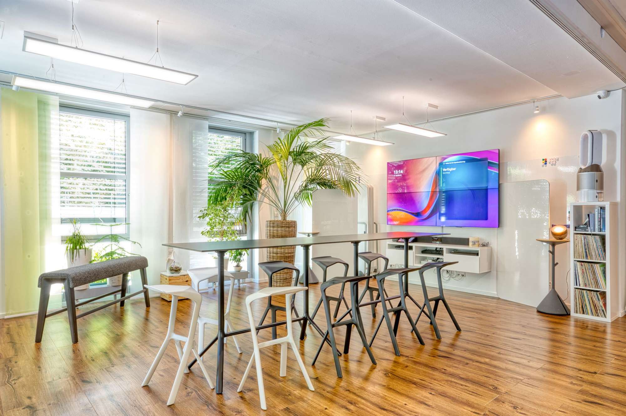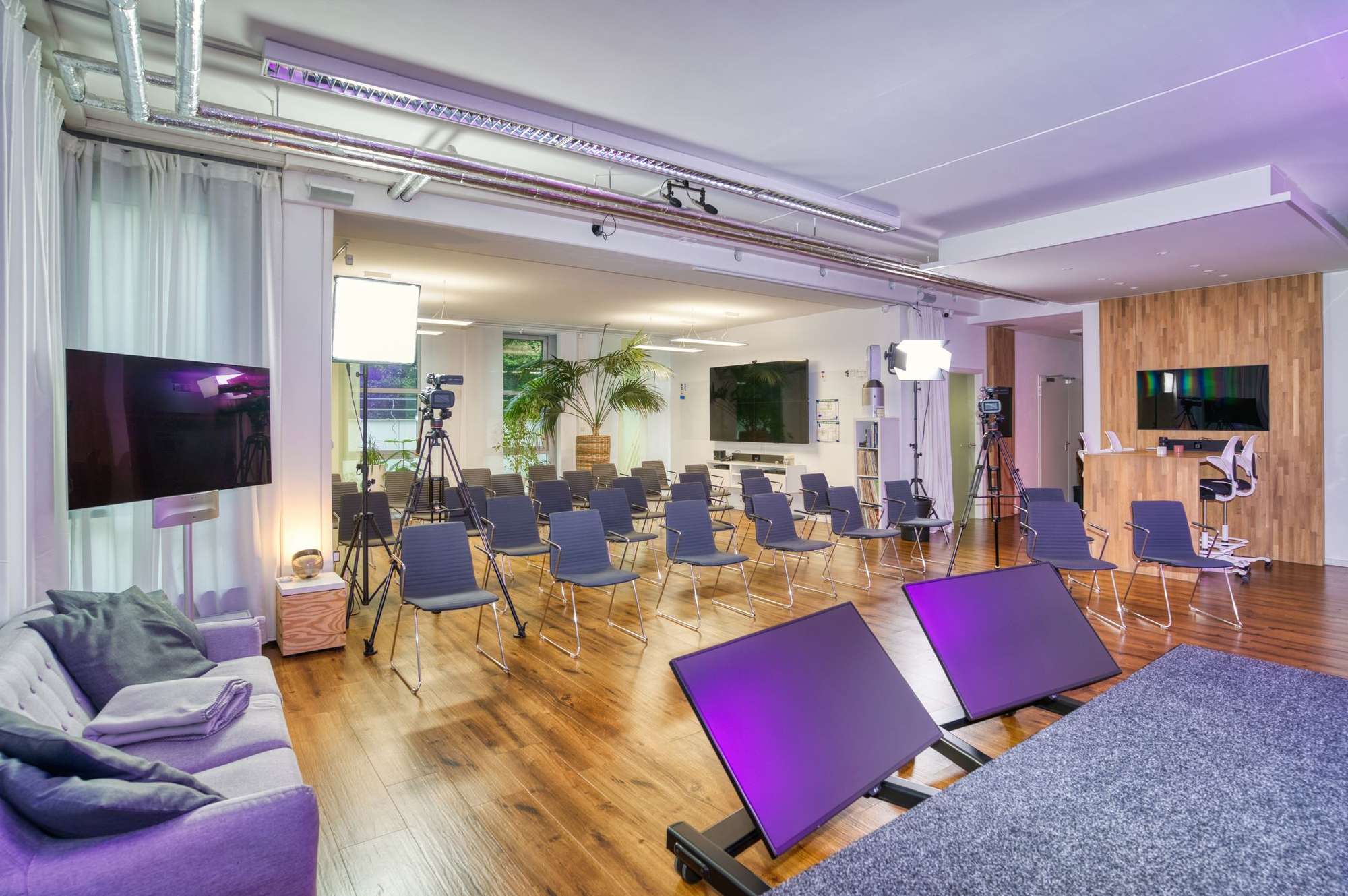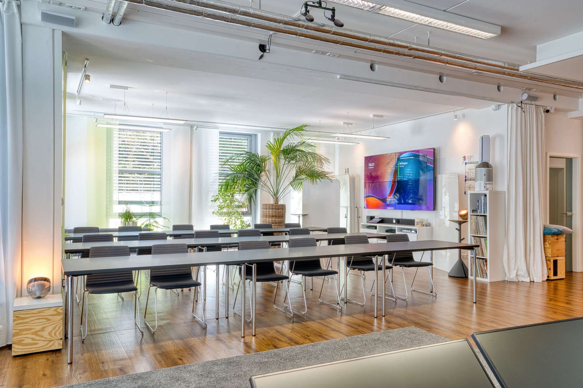 Event-Solutions Anbieter, der seine primären Events in größeren externen Locations umsetzt. Der Event-Space in Unterhaching ist Produktionsstätte für eigene kleine Projekte und kann für Workshops oder Events mit oder ohne technische Betreuung gebucht werden. Unsere eigenen Büros und zwei weitere zubuchbare Konferenzräume befinden sich direkt über der Event-Location.