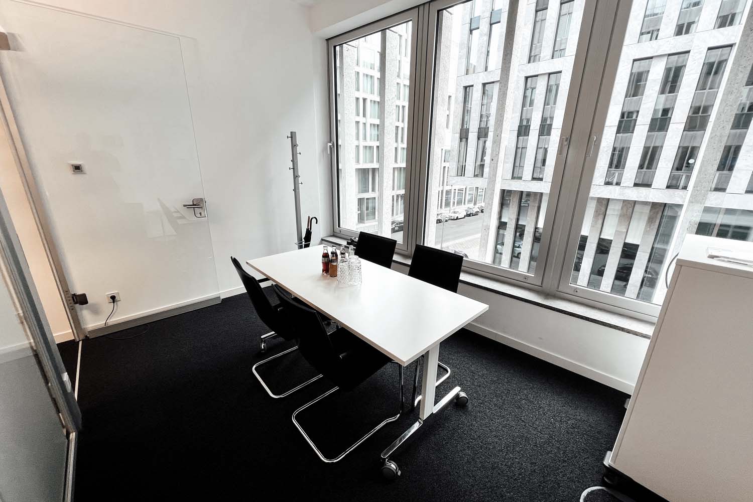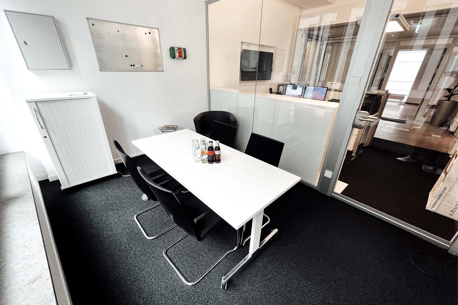 Der Konferenzraum “Bertha” bietet auf 14 m² die perfekte Umgebung für kleine Meetings oder Sprints mit bis zu vier Personen. Durch seine Lage direkt hinter unserem Empfang ist er besonders leicht zugänglich und ideal für schnelle Abstimmungen oder fokussierte Arbeitssitzungen. Die durchdachte Raumgestaltung sorgt dafür, dass Sie und Ihr Team effizient und ungestört arbeiten können.