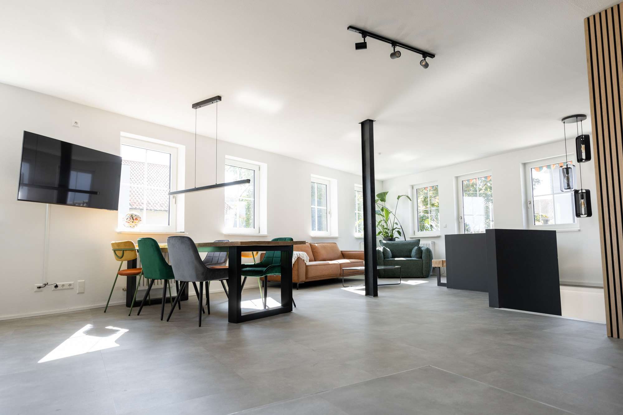 Das WINGMENStudio – der Creative Space. Unser einzigartiges Loftstudio, gestaltet in den harmonischen Farben Weiß/Grau/Schwarz mit stilvollen Eichenholz-Details, bietet mit seiner frischen und modernen Umgebung die ideale Kulisse für verschiedene Events, ein kreatives Treffen oder Medienproduktionen für Film & Fotografie. Unser Loft Mietstudio liegt in Prien am wunderschönen Chiemsee, in verkehrsgünstiger Lage direkt an der Autobahn A8 und 4 Geh-Minuten zur Bahnanbindung München-Salzburg.