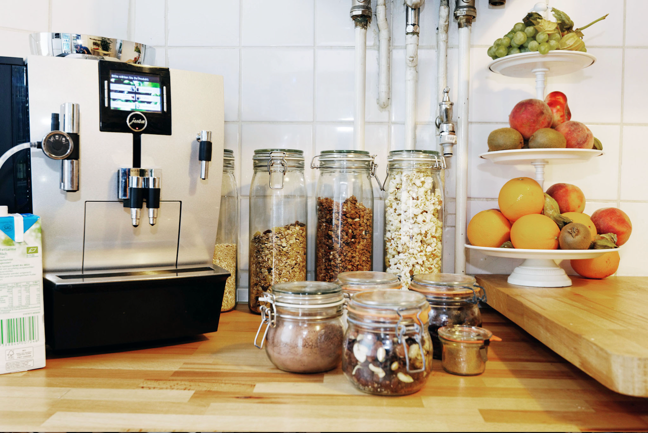 - ein prall gefüllter, riesiger Getränke und eine Obst, Snack und Müslibar die keine Wünsche offen lässt
