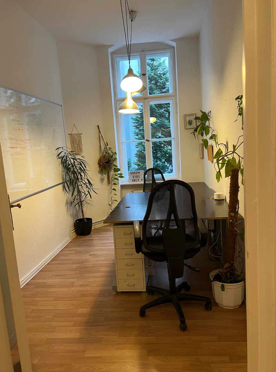 In unserem großzügigen lichtdurchflutetem Office in Mitte wird wieder ein Büroraum mit Platz für bis zu 8 Personen frei (Preis variiert je nach Anzahl der genutzten Arbeitsplätze). Im Preis sind alle Nebenkosten wie Getränke, Snacks (frisches Obst, Müslibar, kleine Snacks), Drucker, wöchentliche Reinigung, Nutzung eines großen und repräsentativen Meetingraumes und Co. enthalten. Der Büro-Raum wird für euch mit bis zu 8 einzelnen Arbeitstischen und Stühlen, einem Schrank und reichlich Pflanzen ausgestattet und steht eurem Unternehmen exklusiv zur Verfügung (wird nicht geteilt).