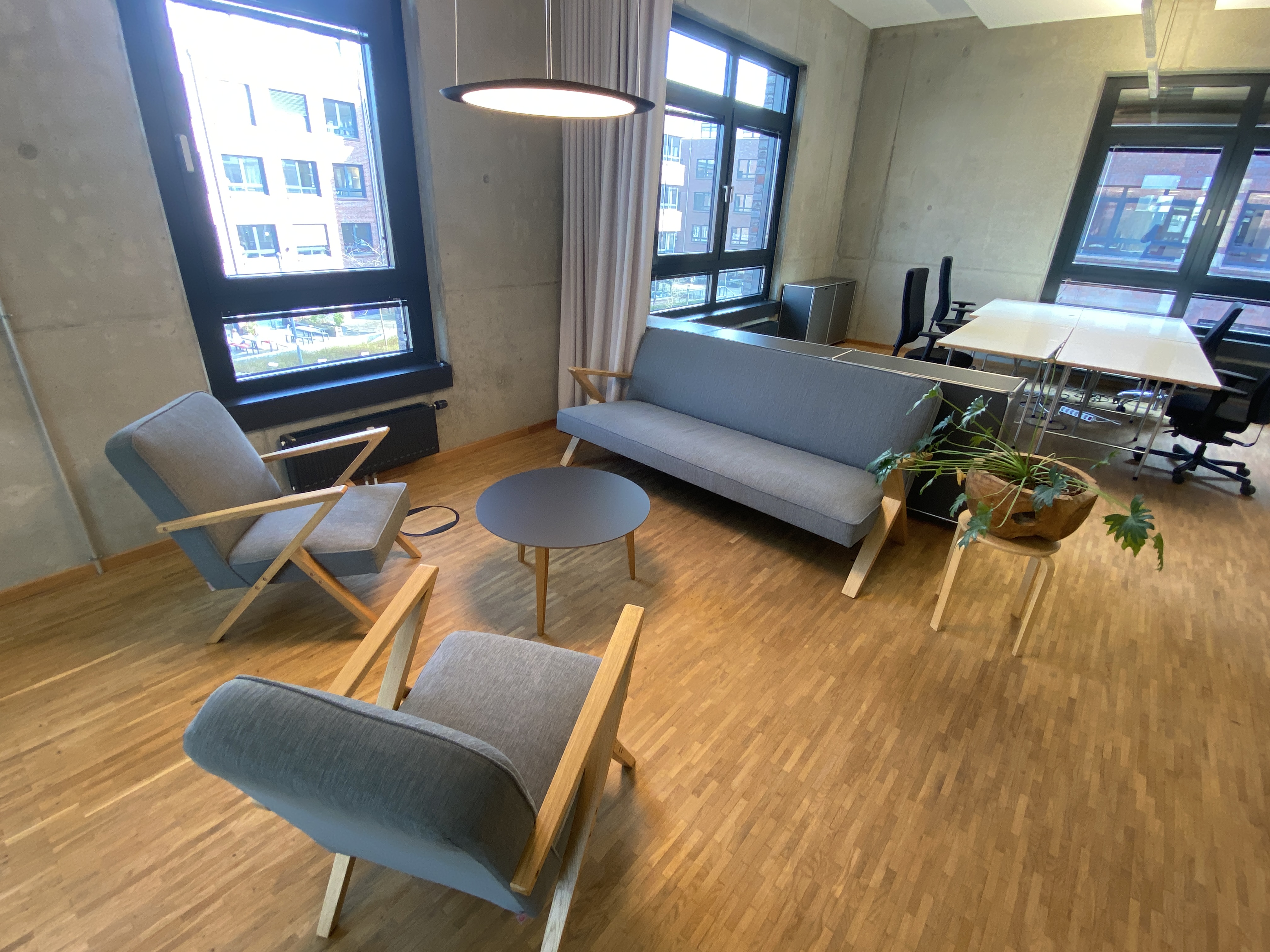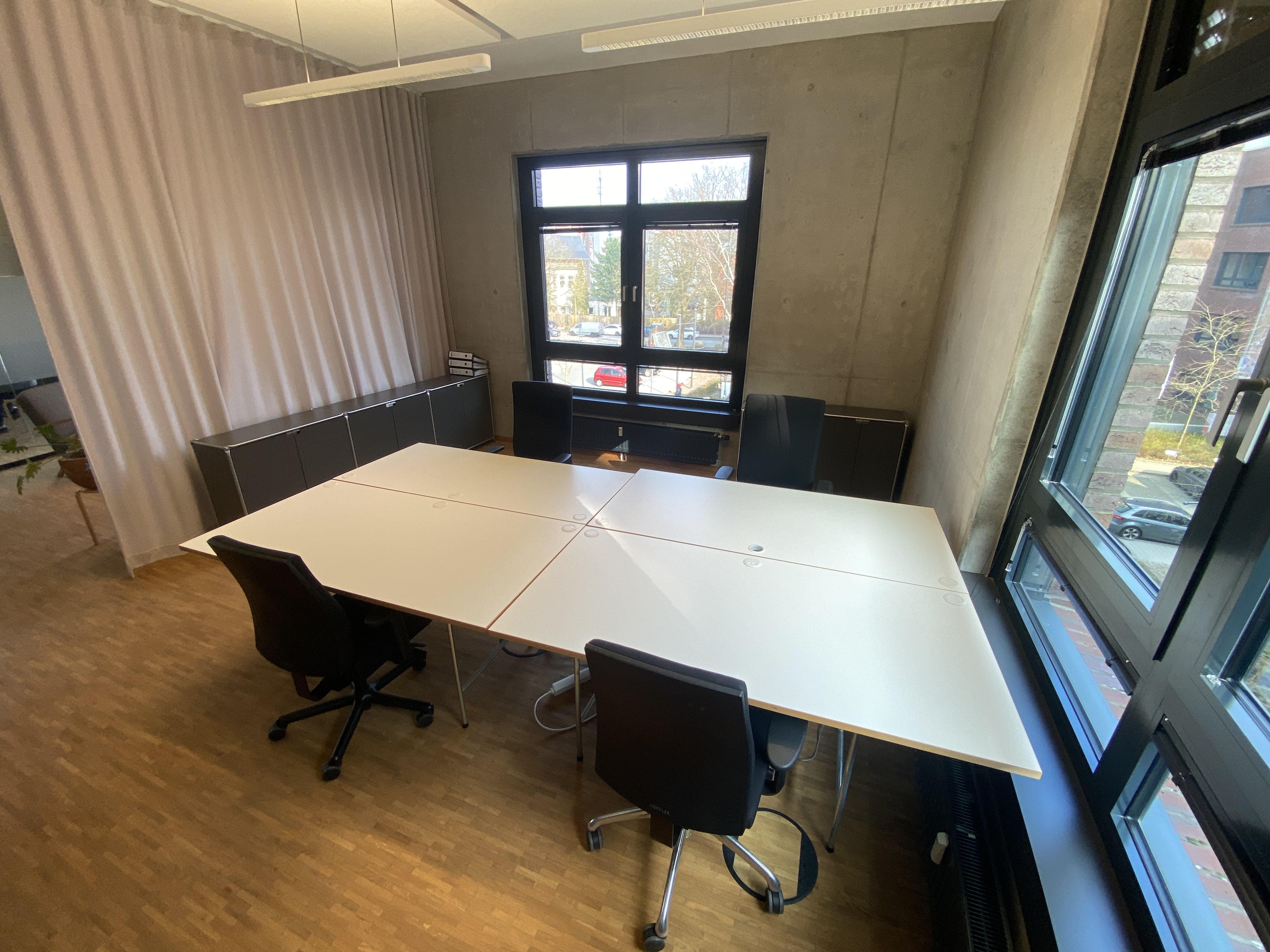 • Vier Arbeitsplätze in einem 100qm großen Gemeinschaftsbüro
