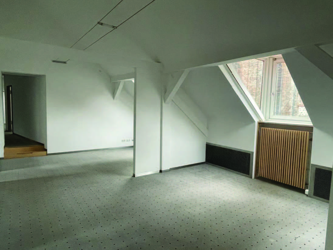 Besonderheit hier ist die Kombination aus Altbausubstanz und der Möglichkeit moderne kollaborative Nutzungseinheiten unterzubringen. Besonders charmant ist das ovale Treppenhaus, mit dem Sie auch direkt in Ihre Mietfläche