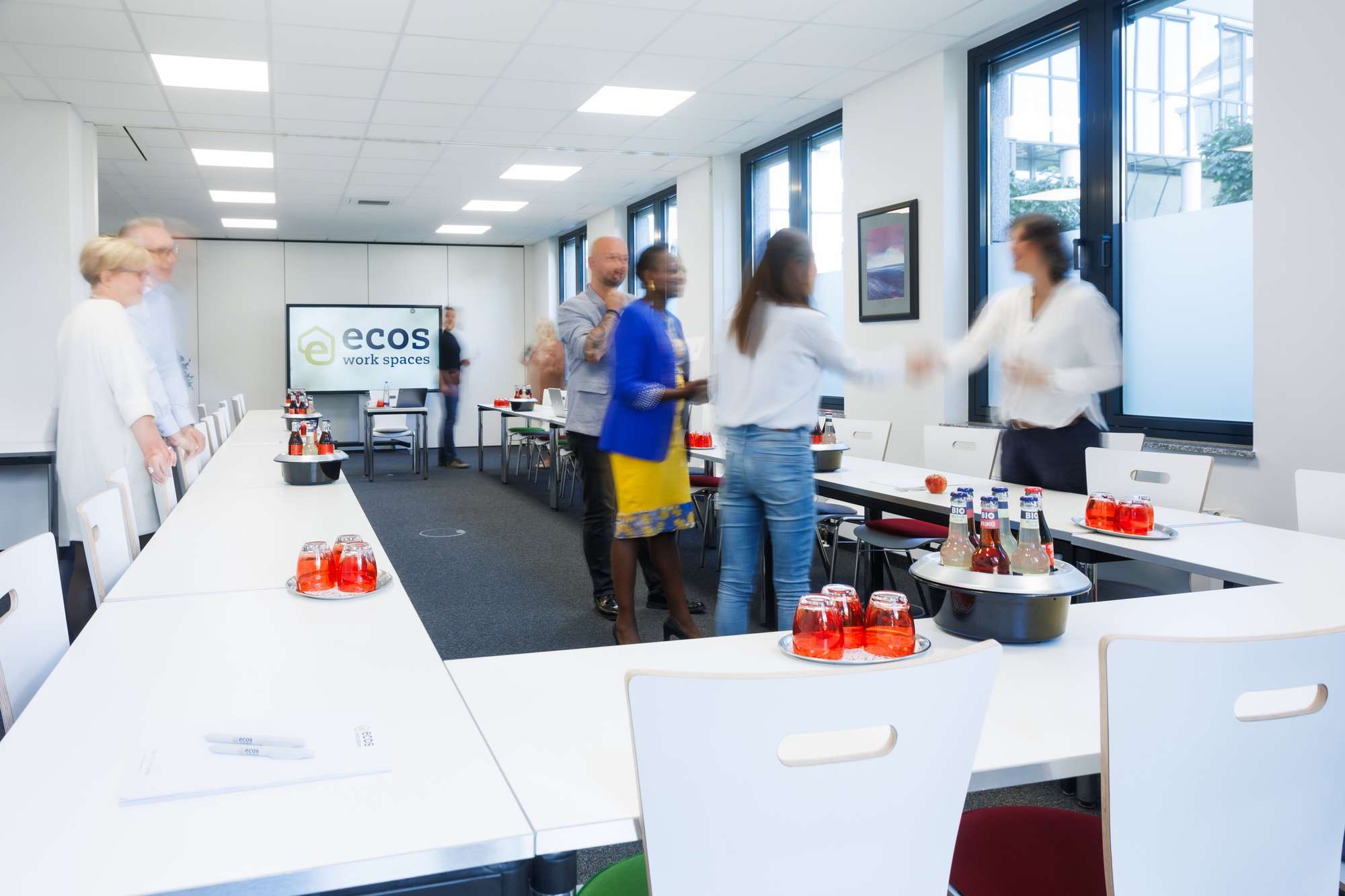 Helle und klimatisierte Räume, die durch unser mobiles Trennwandsystem flexibel erweitert werden können, bieten Platz für bis zu 85+ Personen - abhängig von gewünschter Bestuhlung bzw. Möblierung. Modernste Konferenztechnik, multifunktionale Möblierung, charmanter Empfang und Betreuung deiner Teilnehmer und Gäste sowie Serviceleistungen nach Wunsch machen deine Veranstaltung zum Erfolg. Gleich ob du eine Konferenz, ein Seminar, einen Workshop, eine Hausmesse, einen Vortrag oder eine Gesellschafterversammlung ausrichten willst.↵Unsere Räume von 15- 49 qm Einzelgröße lassen sich in verschiedenen Größen zusammenlegen. Maximale Ein-Raum-Größe ist 125 qm.↵Auch ABEND- oder WOCHENEND-Nutzung ist gerne möglich. Am besten rufe uns an und wir beraten dich sehr gerne welche Raumkombination für deine Teilnehmerzahl und geplante Veranstaltung perfekt ist. ↵↵Selbstverständlich bewirten wir dich gerne vom Espresso, Cappuccino und diversen Kaltgetränken auch mit Frühstück oder Snacks bis hin zum kompletten Mittagessen.↵↵Beeindrucke deine Geschäftspartner, Kunden und Teilnehmer mit unserem außergewöhnlichen Ambiente, dem herzlichen und charmanten Empfang und zuvorkommenden Service durch unser Team.↵↵Genieße unseren Garten mit Süd-Terrasse und unser Bistro für Pausen und hinterlasse bei deinen Gästen und Teilnehmern einen unvergesslich positiven Eindruck.↵↵Freue dich über günstige und flexible Konditionen - bei häufigem Bedarf nutze 20 % Rabatt mit ecosMEETING (zu 30 € mtl.)