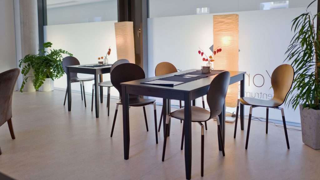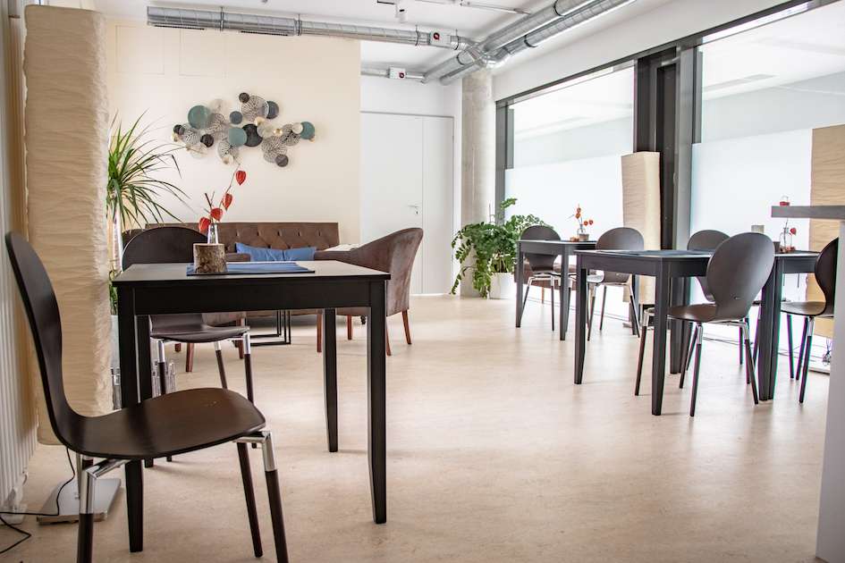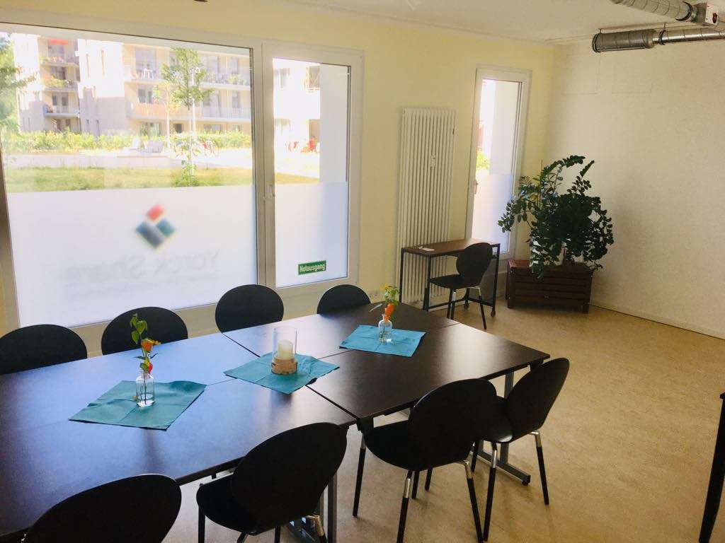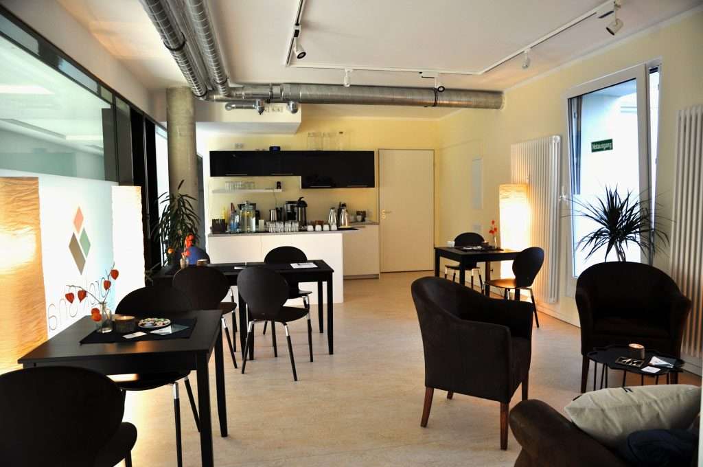 Die multifunktionale Fläche der Eventetage, bestehend aus dem Loungebereich Wacholder und dem Raum Gingko ist so praktisch wie vielseitig. Ob Eltern-Kind-Kaffee, Buchvorstellungen, Themenabende, Vorträge, Networking, Seminare, Workshops, Lesungen, Ausstellungen, Pop-Up-Events, Feiern, Meetings, Sport oder Spiele - tobt euch aus! Je nach Nutzung und Bestuhlung finden hier auf der gesamten Etage bis zu 45 Personen Platz. Die bodentiefen Fenster auf beiden Seiten machen den Raum zu einer ganz besonderen Location, der begehbare Innenhof lädt jederzeit zu einer Pause ein. Luftig, modern und vielfältig nutzbar.