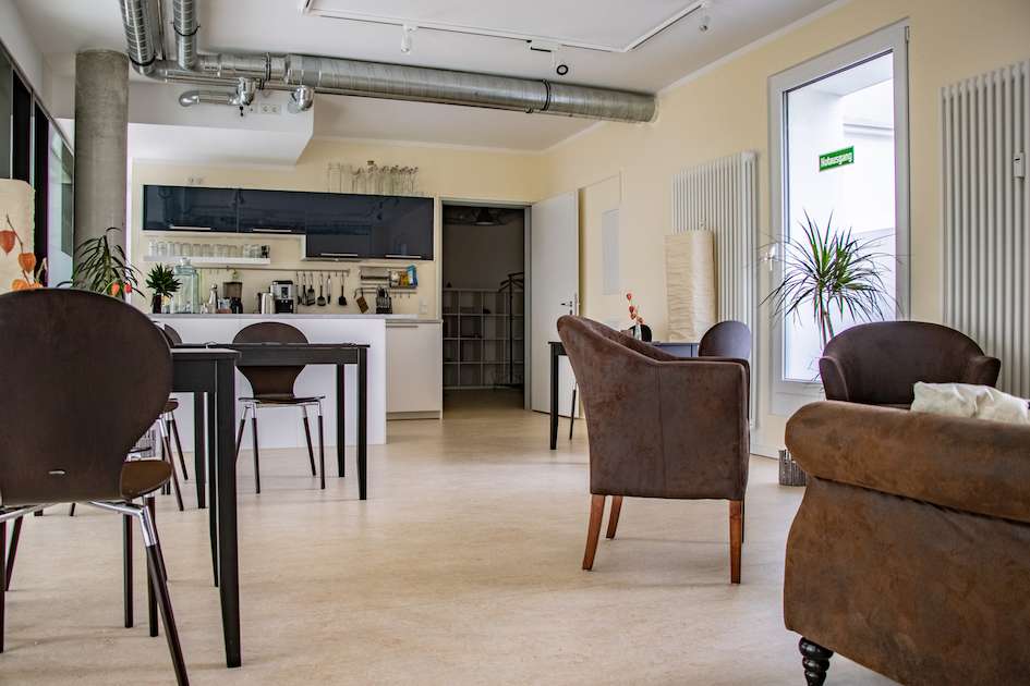 voll ausgestattete Küche | Metaplanwand | Gym-Matten | Yoga-Kissen | Pilatesbälle > Hocker | Bestuhlung nach Wunsch | Musikanlage | Ringleuchte | Greenscreen | Softboxen
