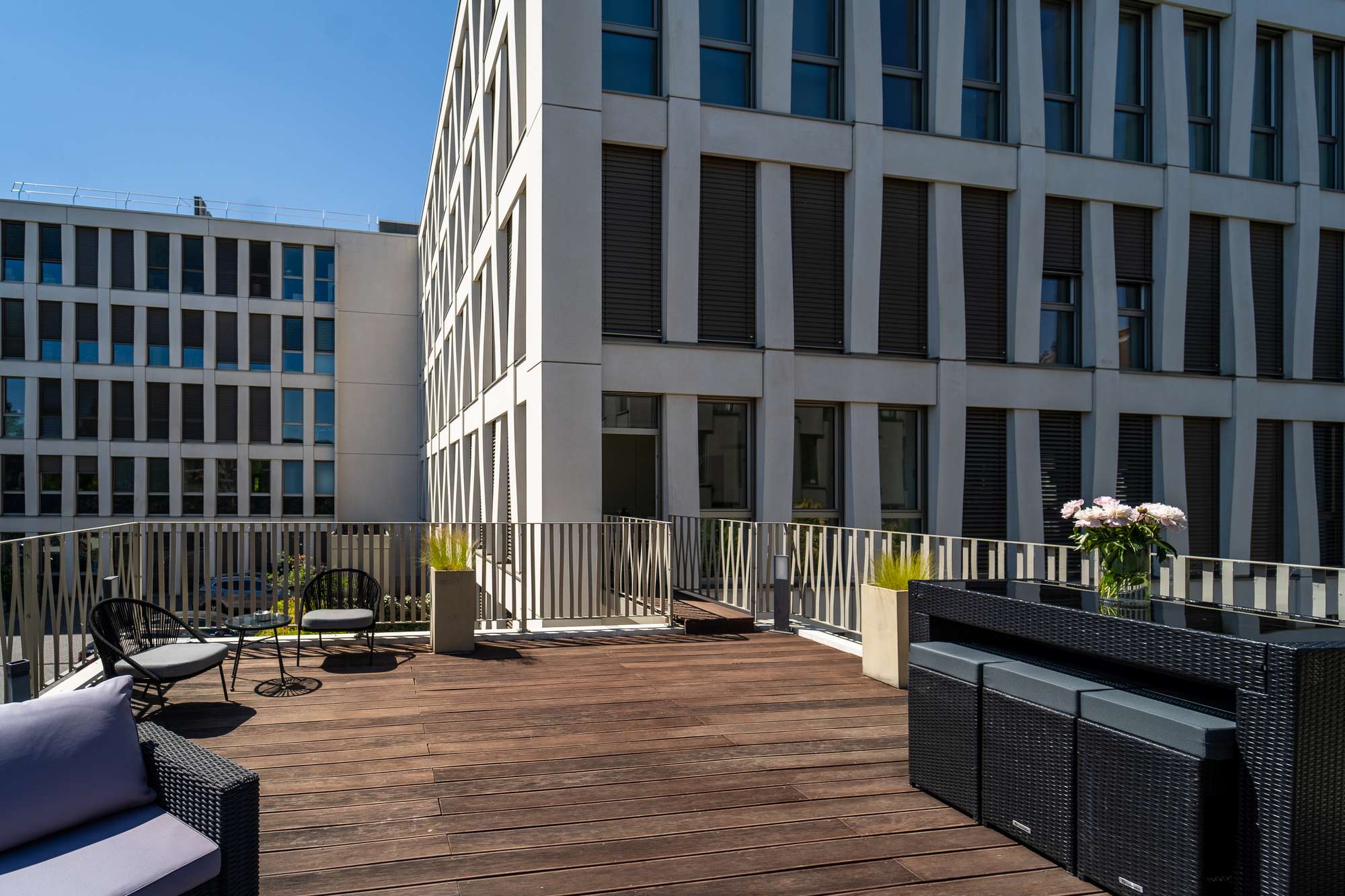 Teeküche, Sanitärbereich, große sonnige Terrasse, Sekretariatsservice