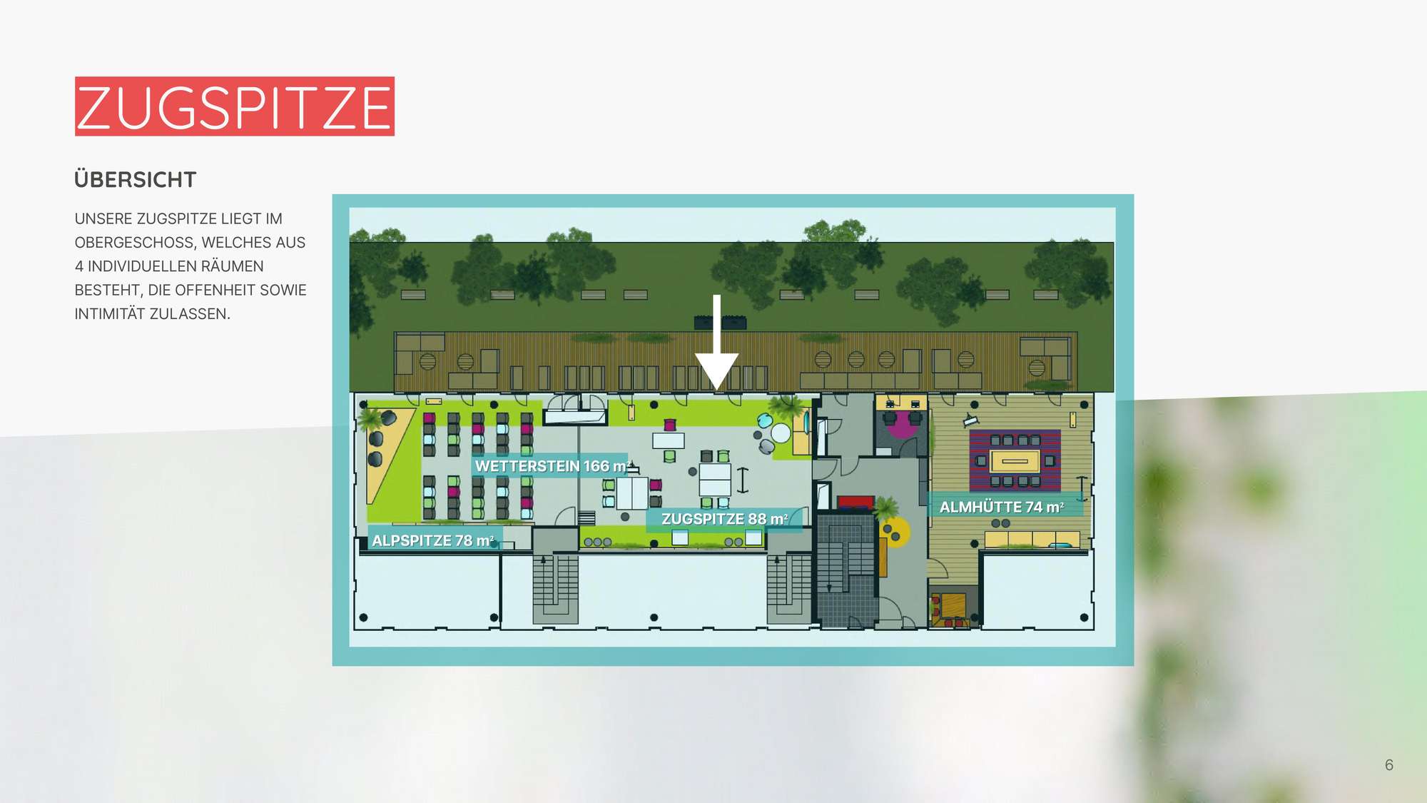 ↵Der Raum Zugspitze bietet euch und eurem Team die Möglichkeit, auf dem Höhepunkt eurer Fähigkeiten zu arbeiten. Die vielfältige Ausstattung bietet euch alles, was ihr dafür braucht und hilft euch dabei, kreative Ideen in flexible Strukturen zu bringen, die eure Projekte zum Erfolg führen.
