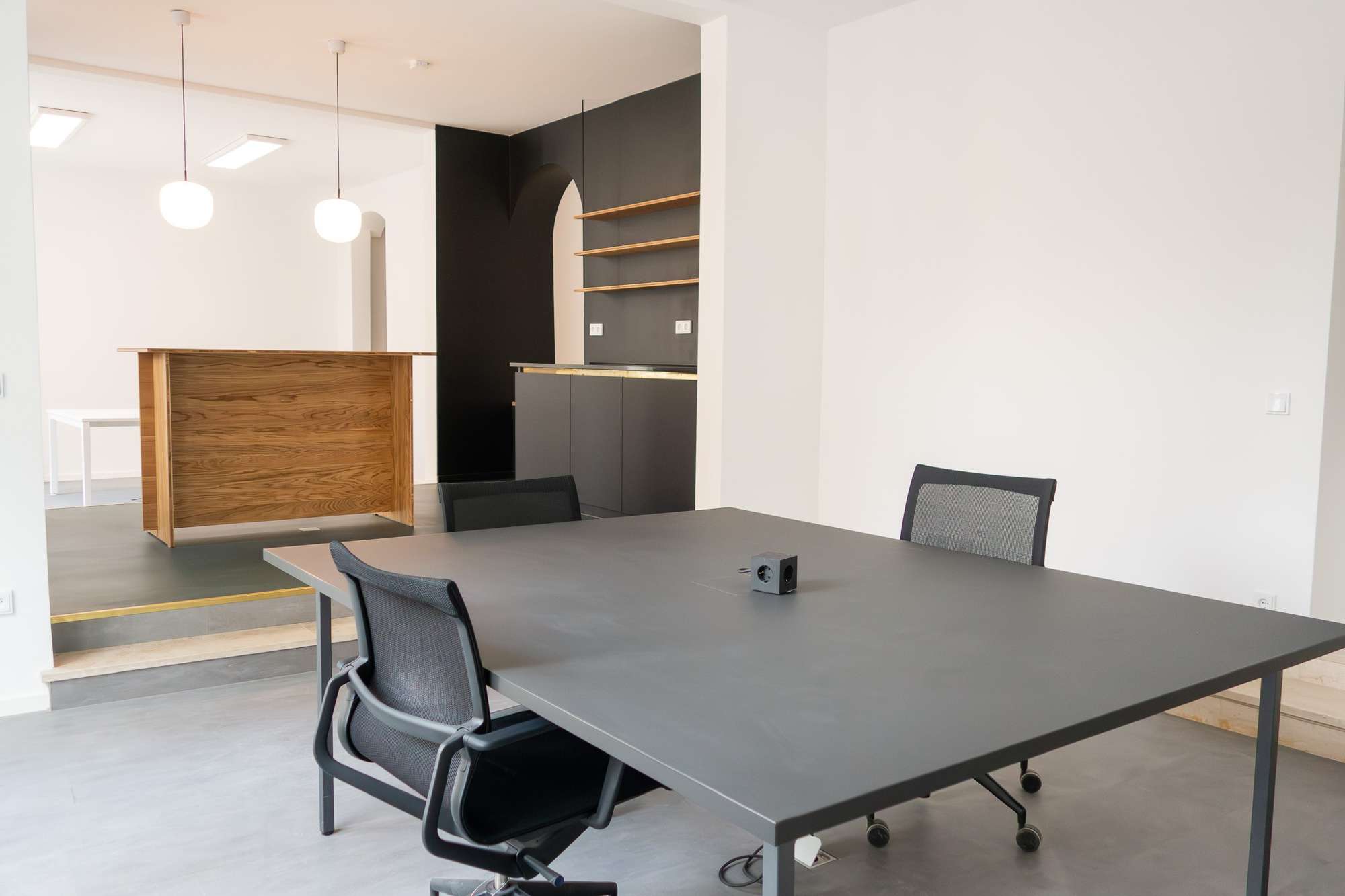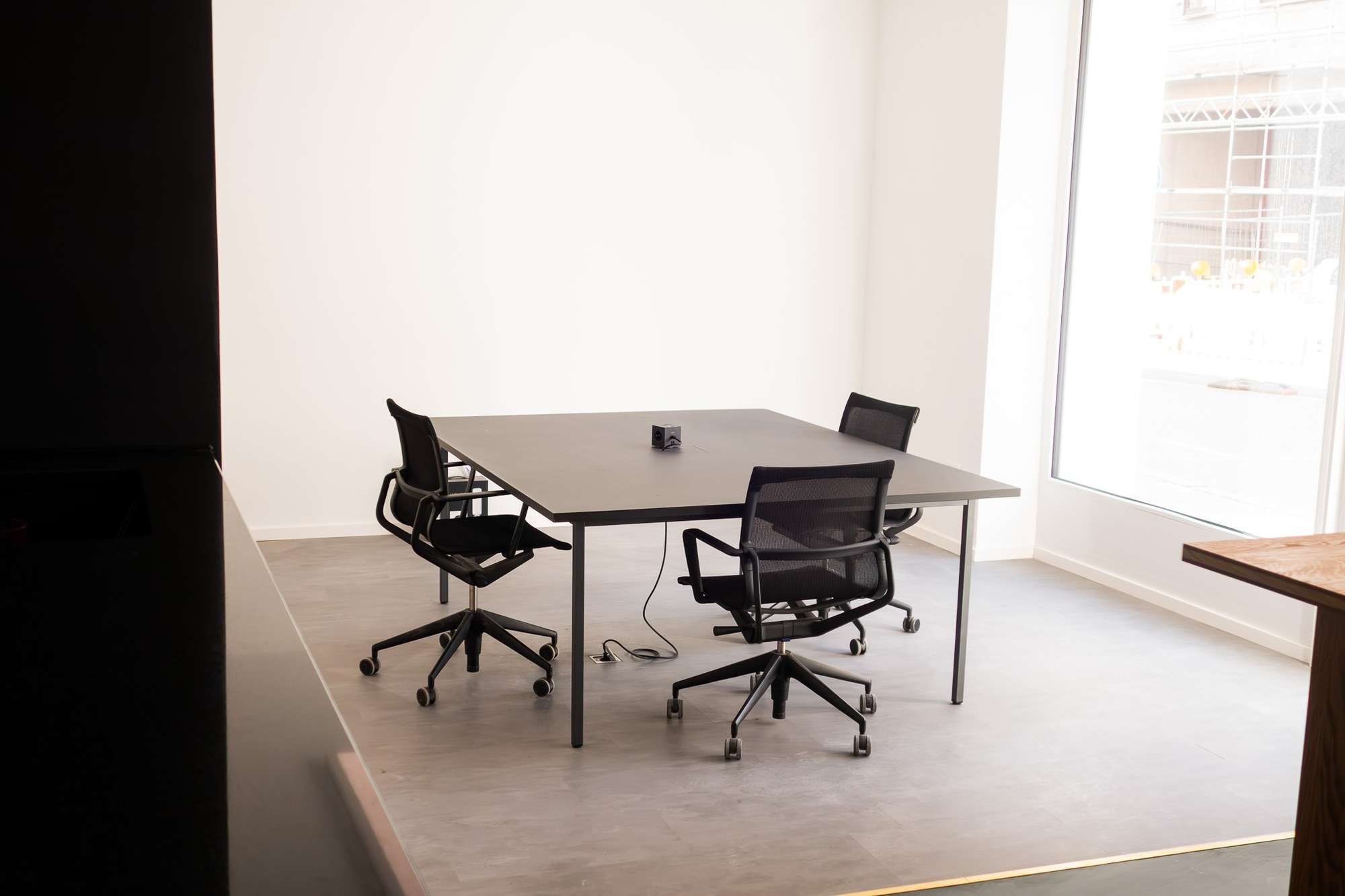 Der Meetingraum verfügt über 4 Sitzmöglichkeiten am Tisch, 4 weitere auf den Fensterbänken und einen Bildschirm mit Apple TV. Die Küche ist voll ausgestattet mit Kühlschrank, Geschirr, Besteck, Mikrowelle, kleiner Herdplatte usw. Ein Hinterhof bietet die Möglichkeit, Fahrräder sicher abzustellen.