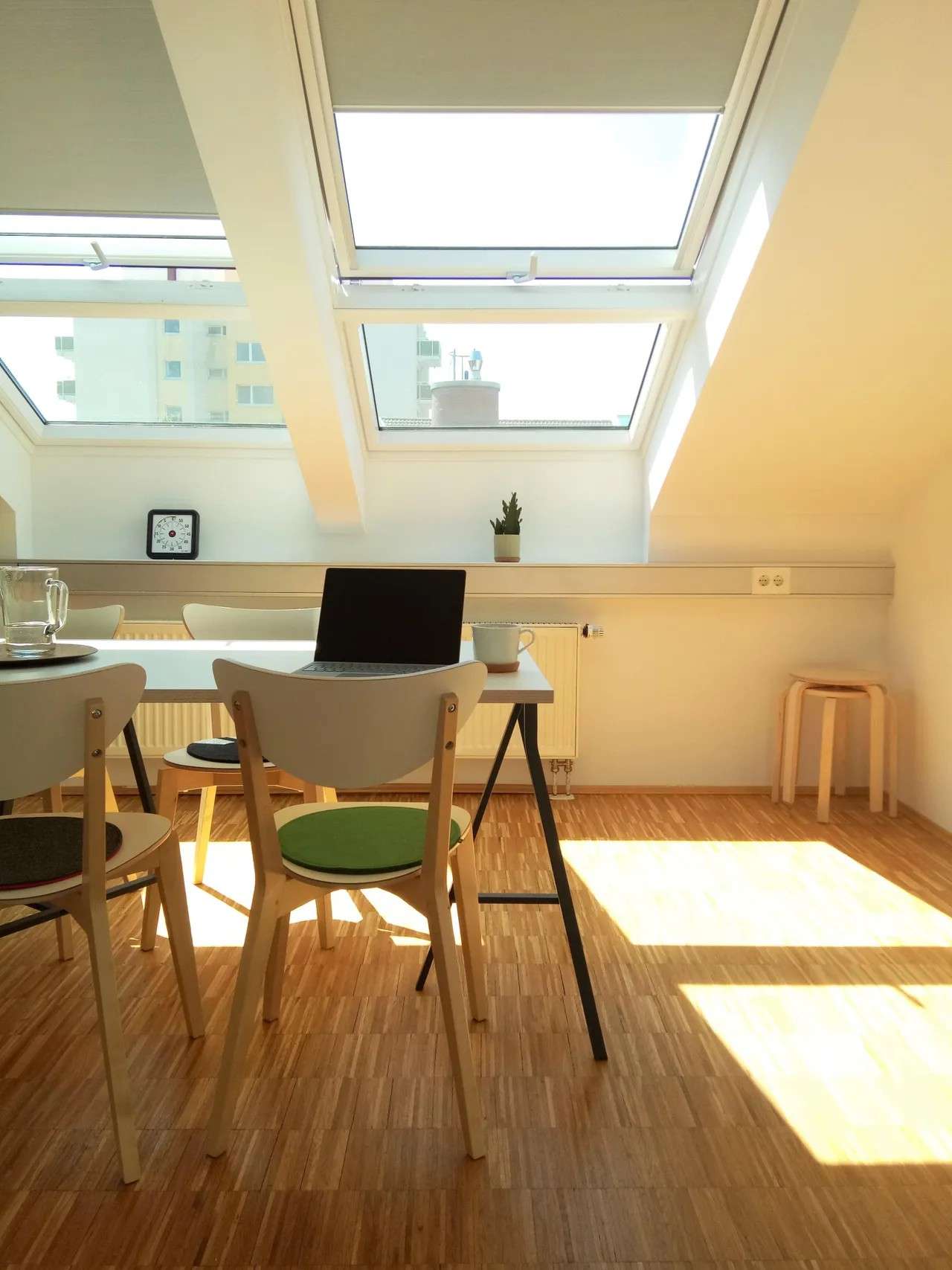 Wir bieten ab dem 01.05.2024 einen schön möblierten Office-Raum zur Untermiete. Genießt die Annehmlichkeiten eines warmen, möblierten Raums mit Wi-Fi, Zugang zu einer vollausgestatteten Küche, einem großen, hellen Workshopraum und einer ruhigen Dachterrasse. Ideal für Einzelunternehmer*innen oder Start-ups, die Wert auf eine inspirierende Arbeitsumgebung legen.↵↵Die helle Bürofläche befindet sich in einer ruhigen Lage und umfasst neben dem privaten Büro auch 102 m² schön möblierte Gemeinschaftsräume inklusive Küche. Die Dachterrasse mit Gartenmöbeln lädt zum Entspannen und Netzwerken ein.