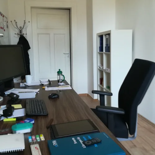 Unser kleinstes Einzelbüro im Vorderhaus ist ein guter Startplatz für deine Idee. Hier kannst du ungestört arbeiten. Ein großer Schreibtisch lädt dazu ein, sofort anzufangen. Das Büro ist abschließbar. Für das Arbeiten im Grünen oder für die Verschnaufpause an der frischen Luft steht unser Innenhof bereit. Bänke, Stühle, ein Schattenplatz oder doch besser in der Sonne – hier kannst du dich ungestört bewegen und dir das beste Plätzchen suchen (wenn es frei ist ;) ). Eine voll ausgestattete Küche und den Sanitärbereich teilst du dir mit den Kolleginnen und Kollegen der drei benachbarten Büros.