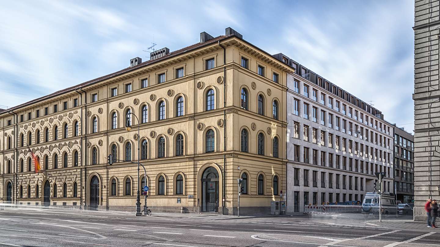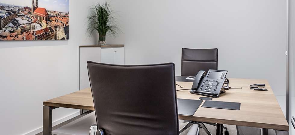 Eigenes Büro im Theresienhof, welches an einem der schönsten Plätze Münchens liegt, dem Odeonsplatz, und an einer der prächtigsten Straßen der Landeshauptstadt, der Ludwigstraße. Voll ausgestattet mit hochwertigen Büromöbeln, Telefon und Internet und gemeinsame Nutzung der allgemeinen Infrastruktur (Bürotechnik und Konferenztechnik, Konferenzräume, Lounges, Coffee-Bar, Empfang etc.). Umfangreiche Büroservices sind bereits in der monatlichen Servicepauschale inkludiert (Sekretariatsservice, Postannahme, Telefonservice, Concierge-Service, Konferenzorganisation).