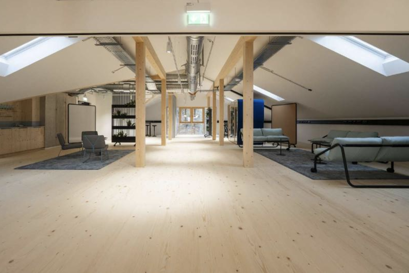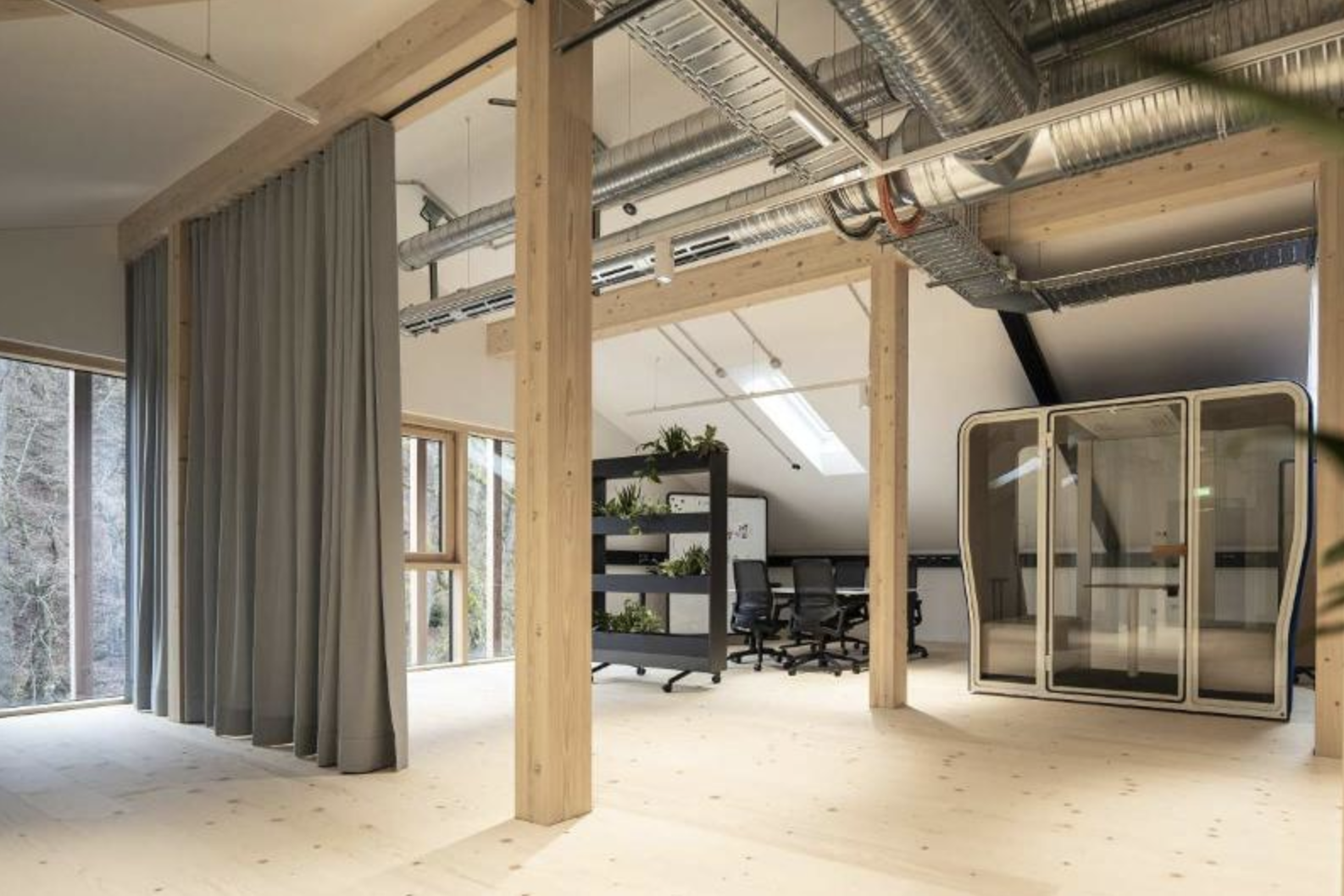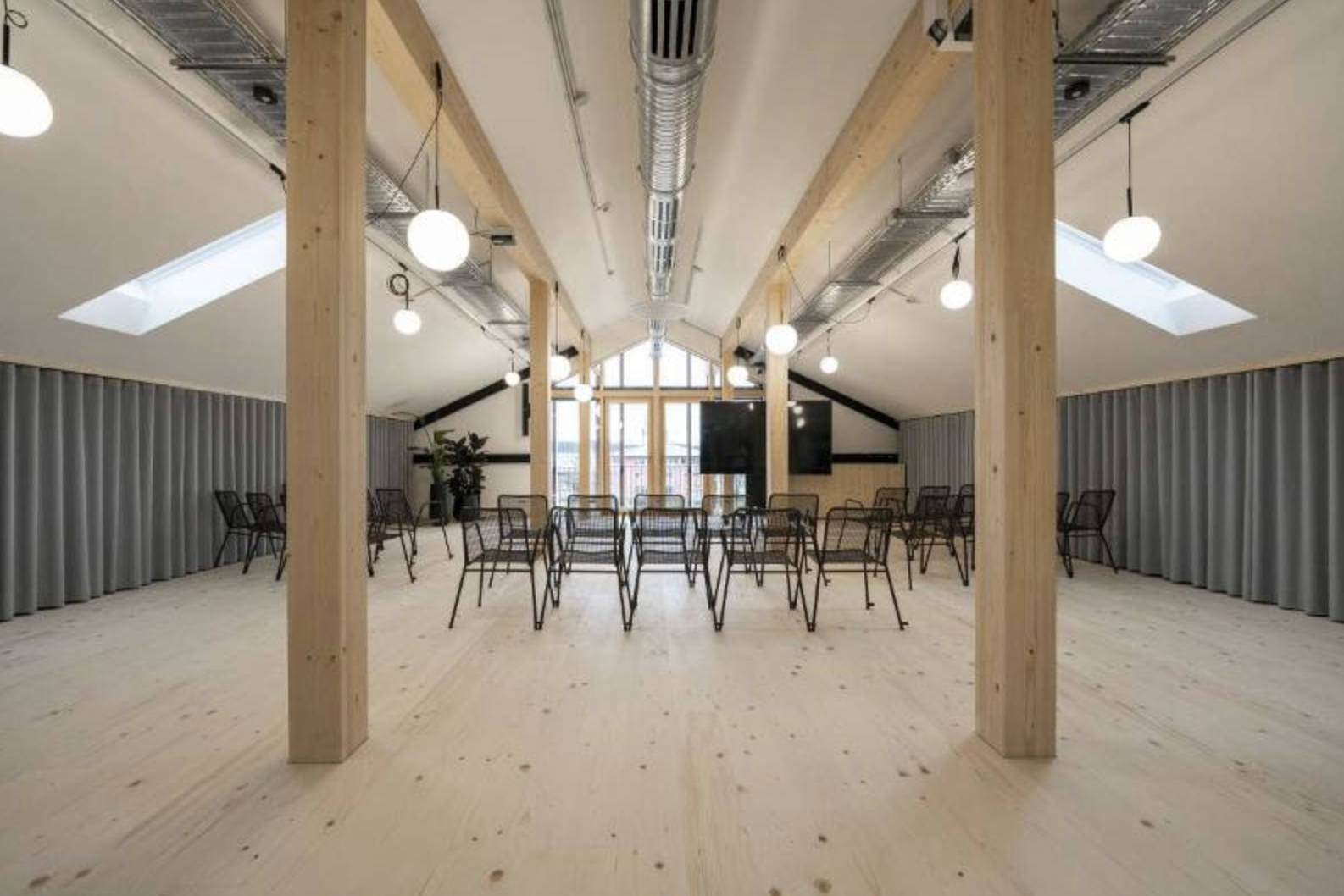 Eventspace E1: Lichtdurchfluteter Raum aus regionalem Holz – Ideal für Workshops und Zusammenarbeit