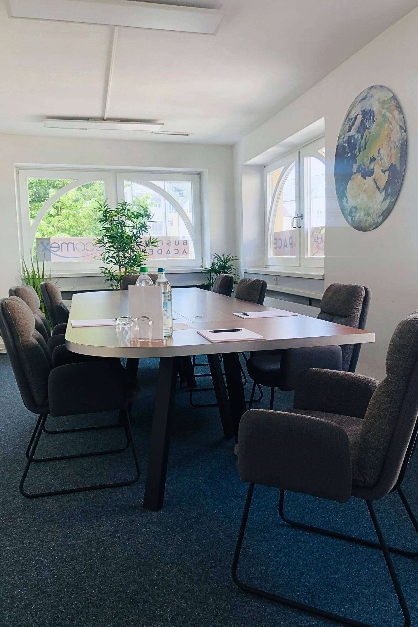 Willkommen in unserem zentralen Workspace mit modernen Konferenzräumen und Standardbüros! Raum Monaco bietet:
