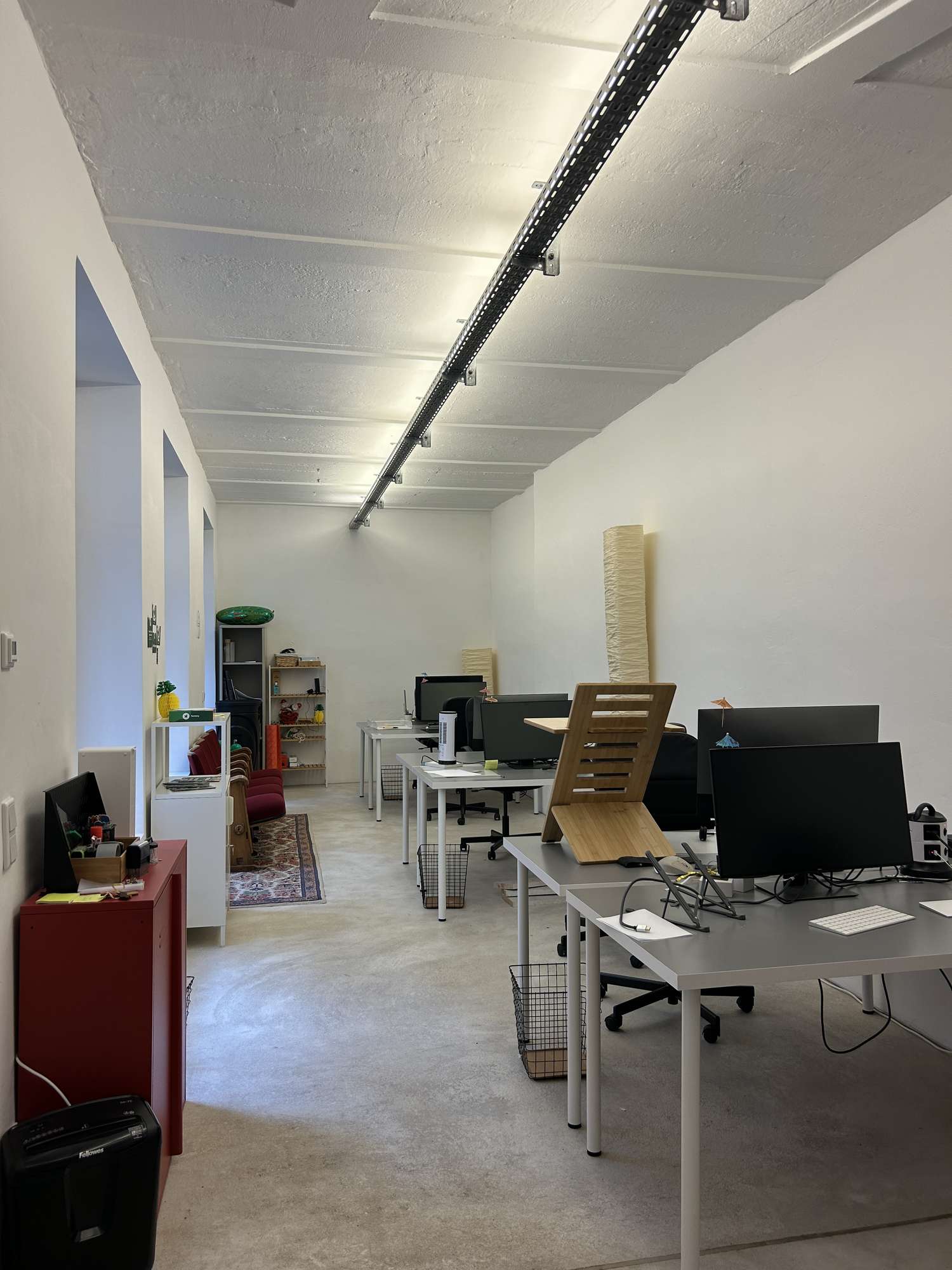 Suchen Sie einen inspirierenden Arbeitsplatz in einem kreativen Umfeld? Wir bieten Ihnen sechs voll ausgestattete Schreibtische, jeweils mit Monitor, in einem offenen Büro, das mit anderen Kreativen und Unternehmern geteilt wird.