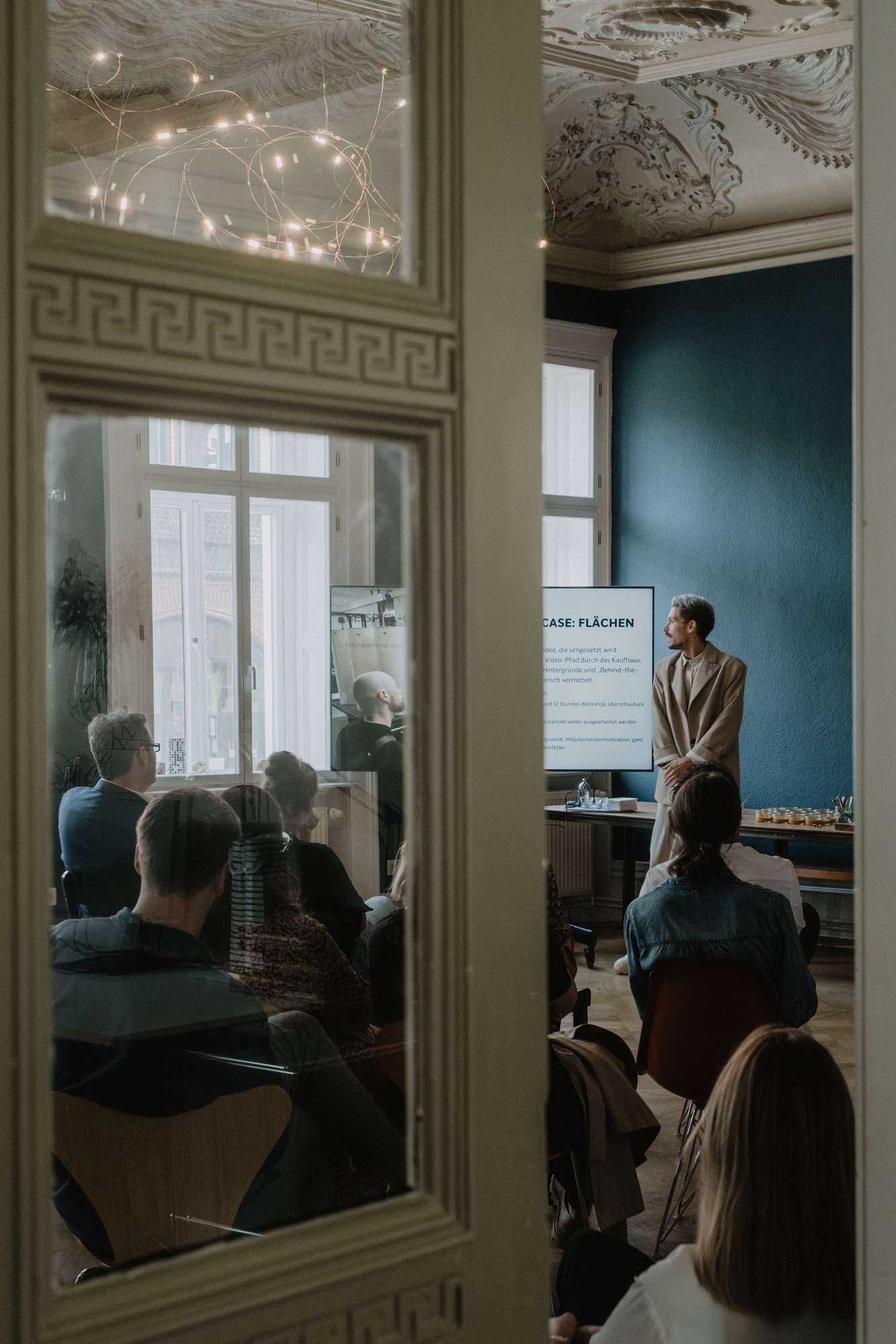 Unser Blauer Salon ist ein multifunktionaler Raum, bestens geeignet für Meetings in großer Runde mit vielen Leuten, Workshops, Hackathons und Teambuilding-Events.