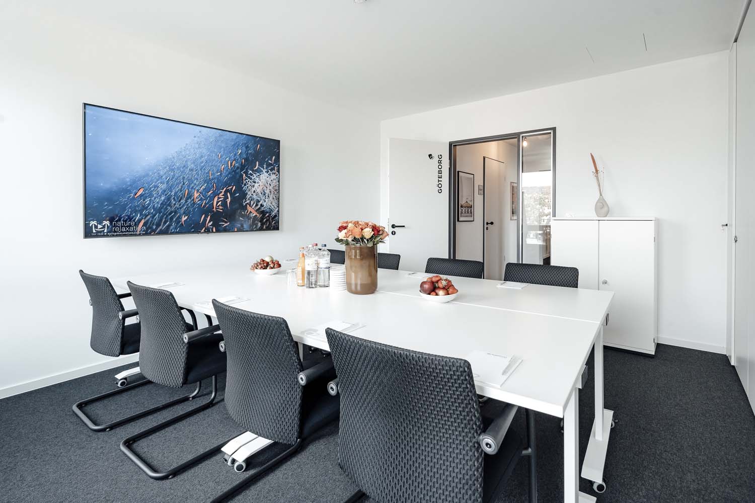 Der Konferenzraum Göteborg bietet eine klare und funktionale Umgebung für Meetings, Workshops und Präsentationen. Mit moderner Technik und High-Speed-Internet ausgestattet, unterstützt er eine effiziente und reibungslose Durchführung Ihrer Veranstaltungen. Das schlichte Design sorgt für eine konzentrierte und produktive Atmosphäre, die den Austausch und die Zusammenarbeit fördert. Ob für kleine Besprechungen oder größere Präsentationen – der Raum passt sich flexibel Ihren Anforderungen an.
