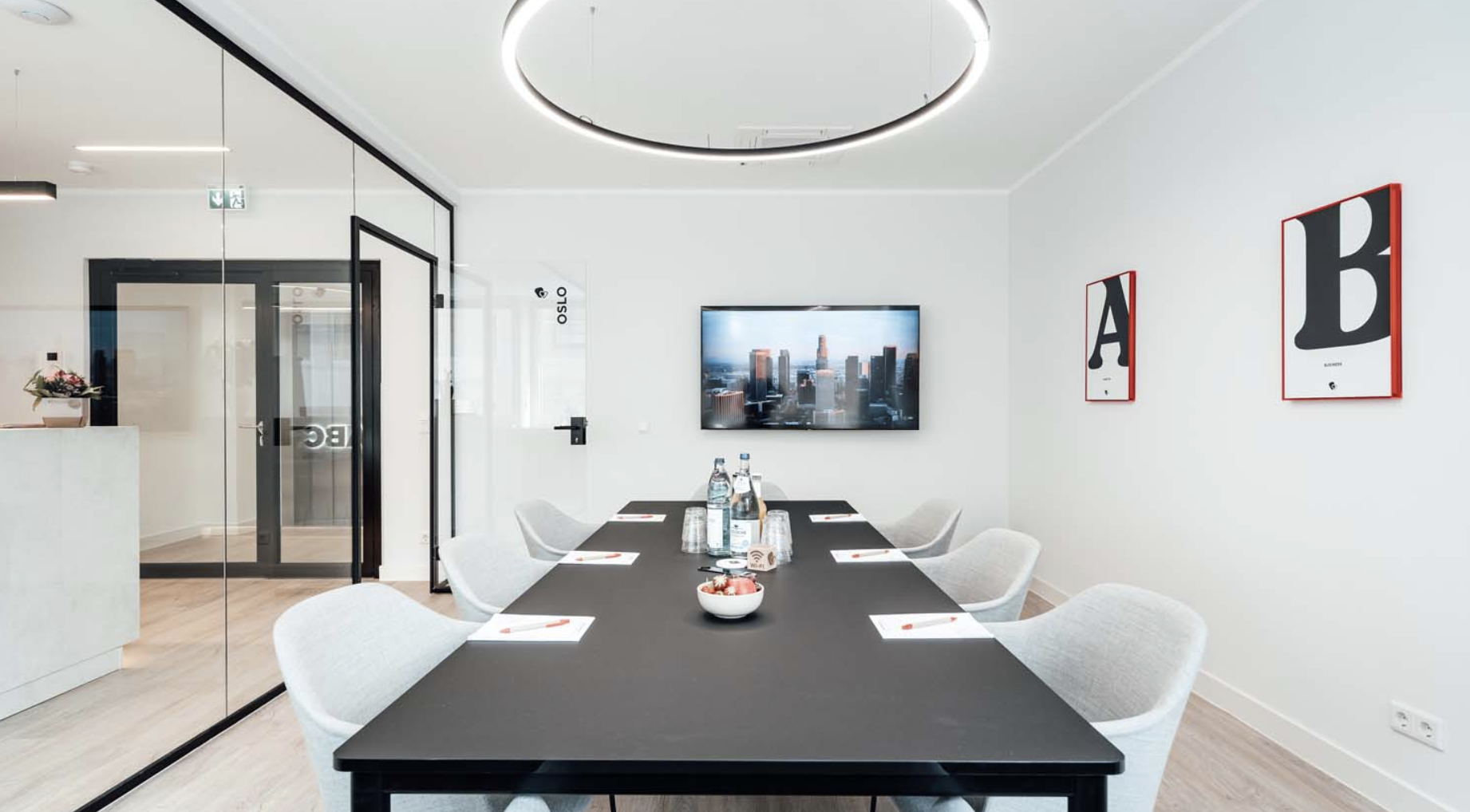 Der Konferenzraum “Oslo” bietet auf 21 m² eine freundliche und sehr helle Umgebung, ideal für Besprechungen, Workshops oder Präsentationen mit bis zu 8 Personen. Die angenehme Atmosphäre und die durchdachte Ausstattung machen diesen Raum perfekt für produktive Zusammenkünfte und kreative Arbeitsphasen.
