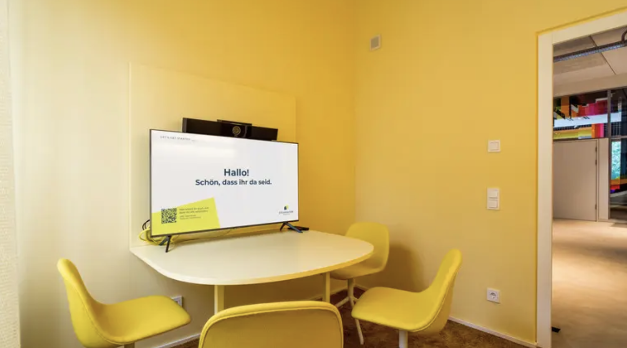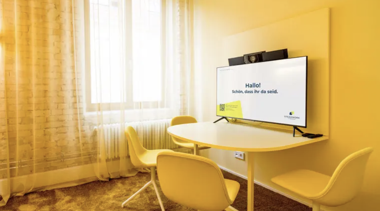 Der Name ist Programm: Der Raum ist speziell für digitale Videokonferenzen und kleinere Besprechungen ausgerichtet. Der hochwertige Bildschirm und das moderne Videokonferenzsystem ermöglichen einen reibungslosen und fokussierten Ablauf an diesen Rückzugsorten. In dieser sonnigen Umgebung sind digitale Meetings doch gleich viel erhellender.